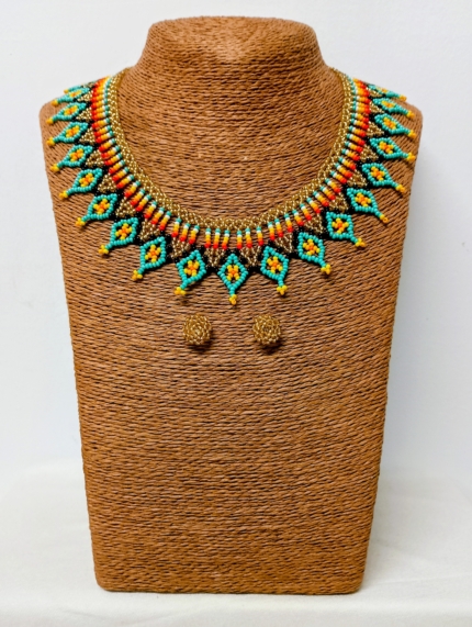 Conjunto collar y pendientes brillo indígena boho artesanal Colombia estilo étnico , La Gata Voladora Alpujarra Almería