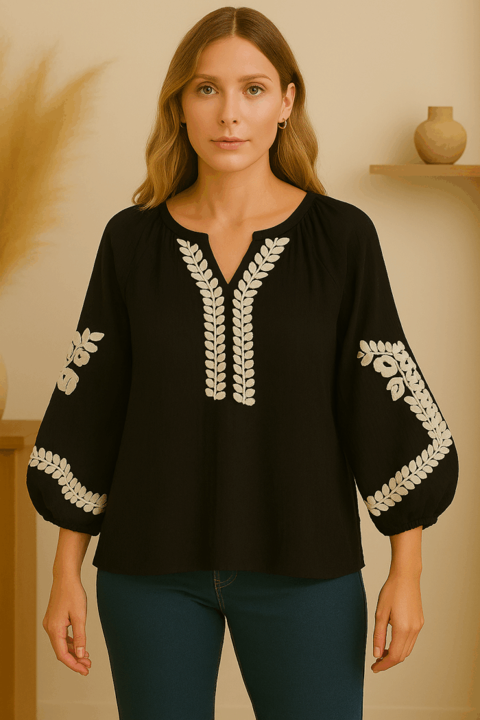 Blusa Bordada Anais – Blusa 100% Algodón con bordados bohemios