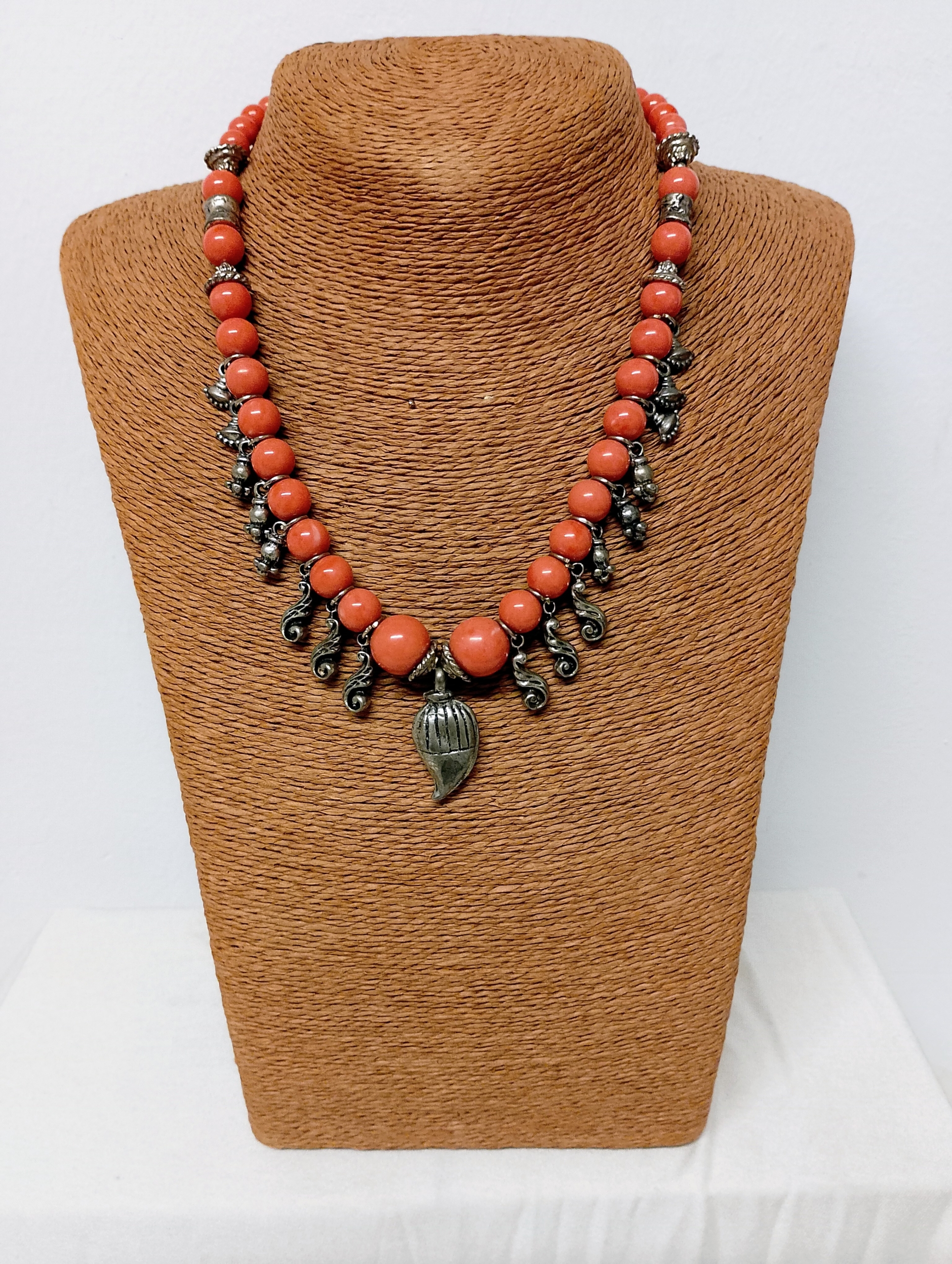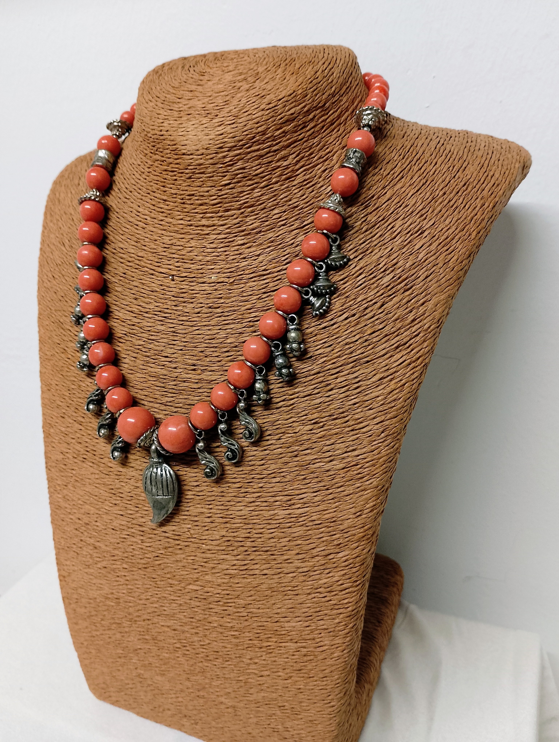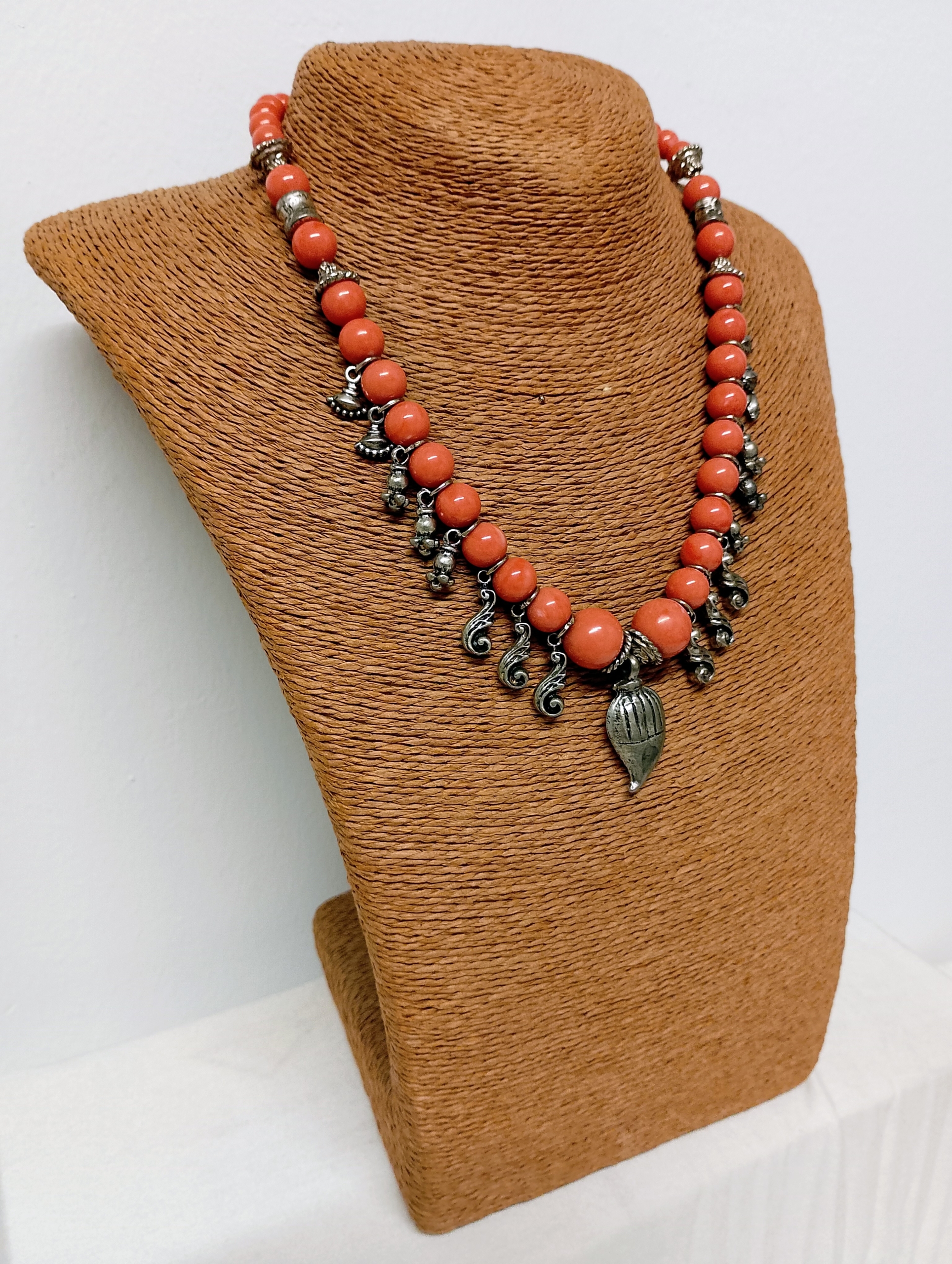 El Collar Bohemio Aruna en tono salmón combina cuentas redondeadas con detalles metálicos y un colgante central artesanal. Un diseño lleno de energía y encanto, perfecto para completar tus looks boho con estilo y personalidad.