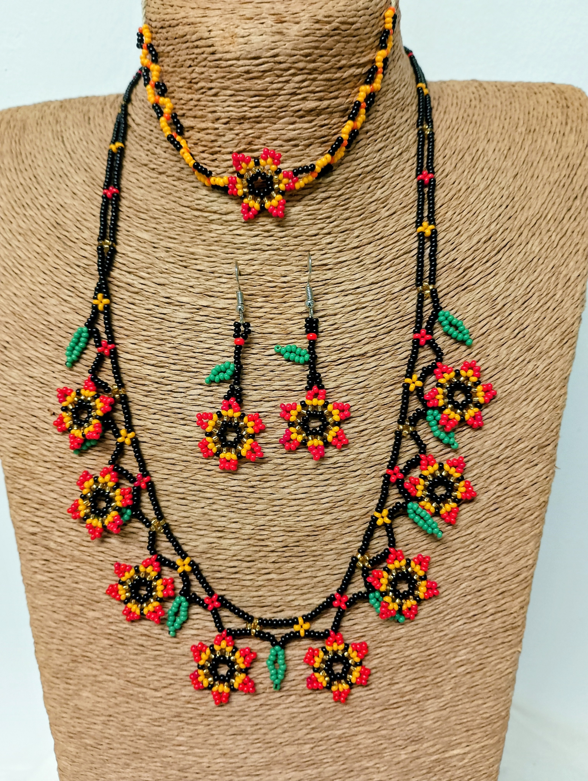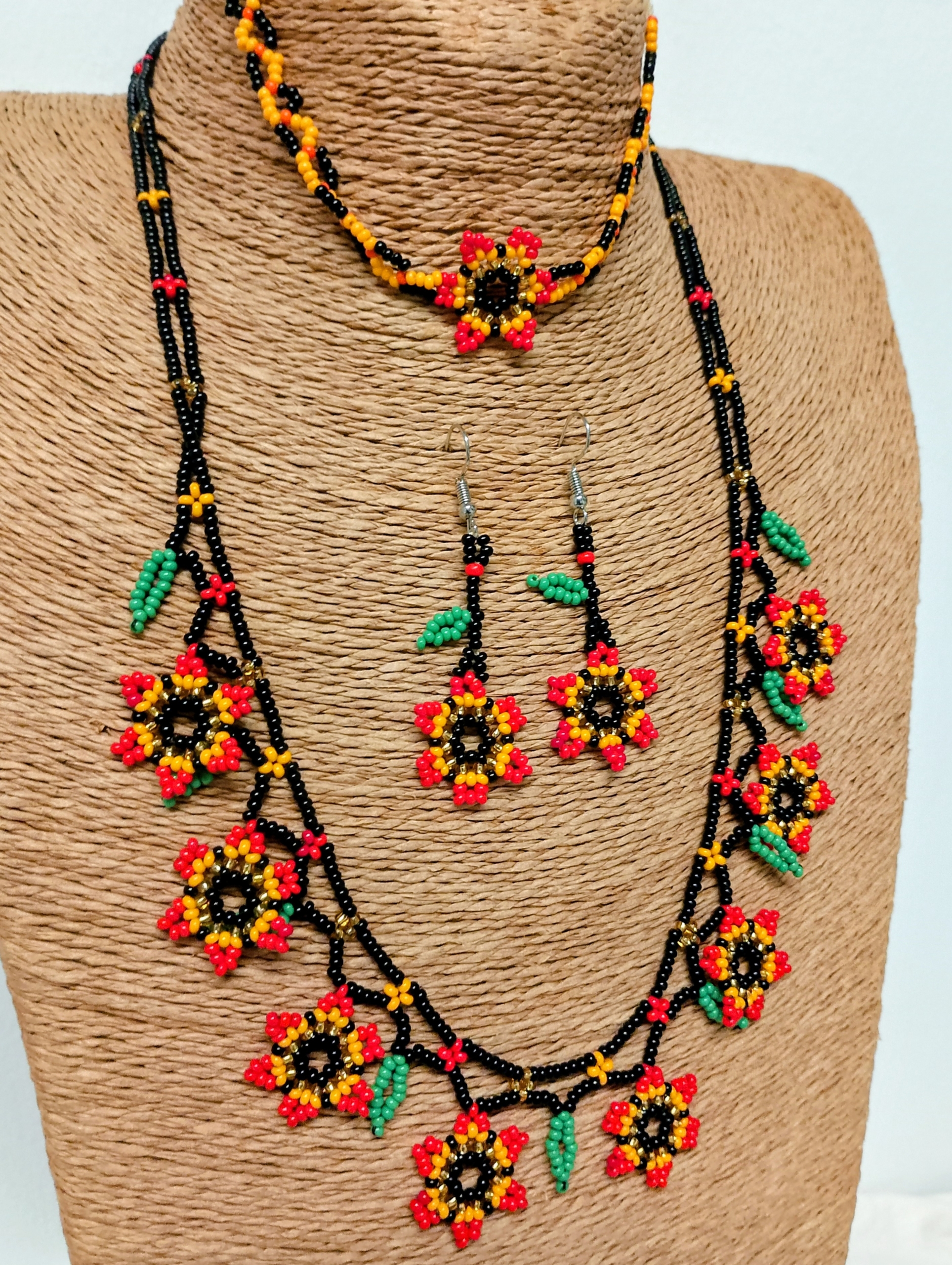 Conjunto Collar, Pendientes y Pulsera Colombia Boho Floral