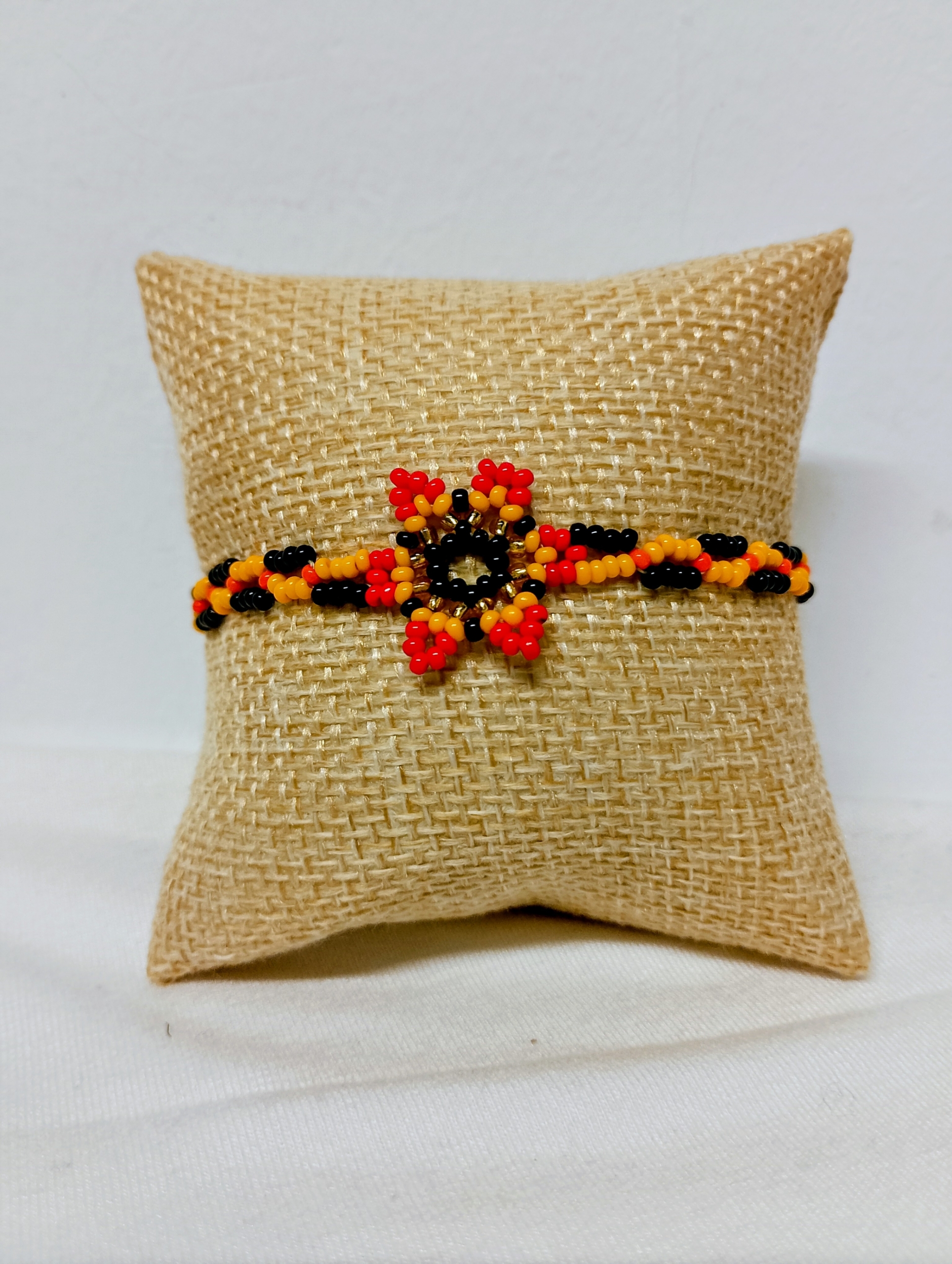Además, la combinación de tonos rojo, amarillo, verde y negro aporta contraste y personalidad. Por lo tanto, este conjunto es ideal para dar vida a looks sencillos o completar outfits bohemios con un toque especial.