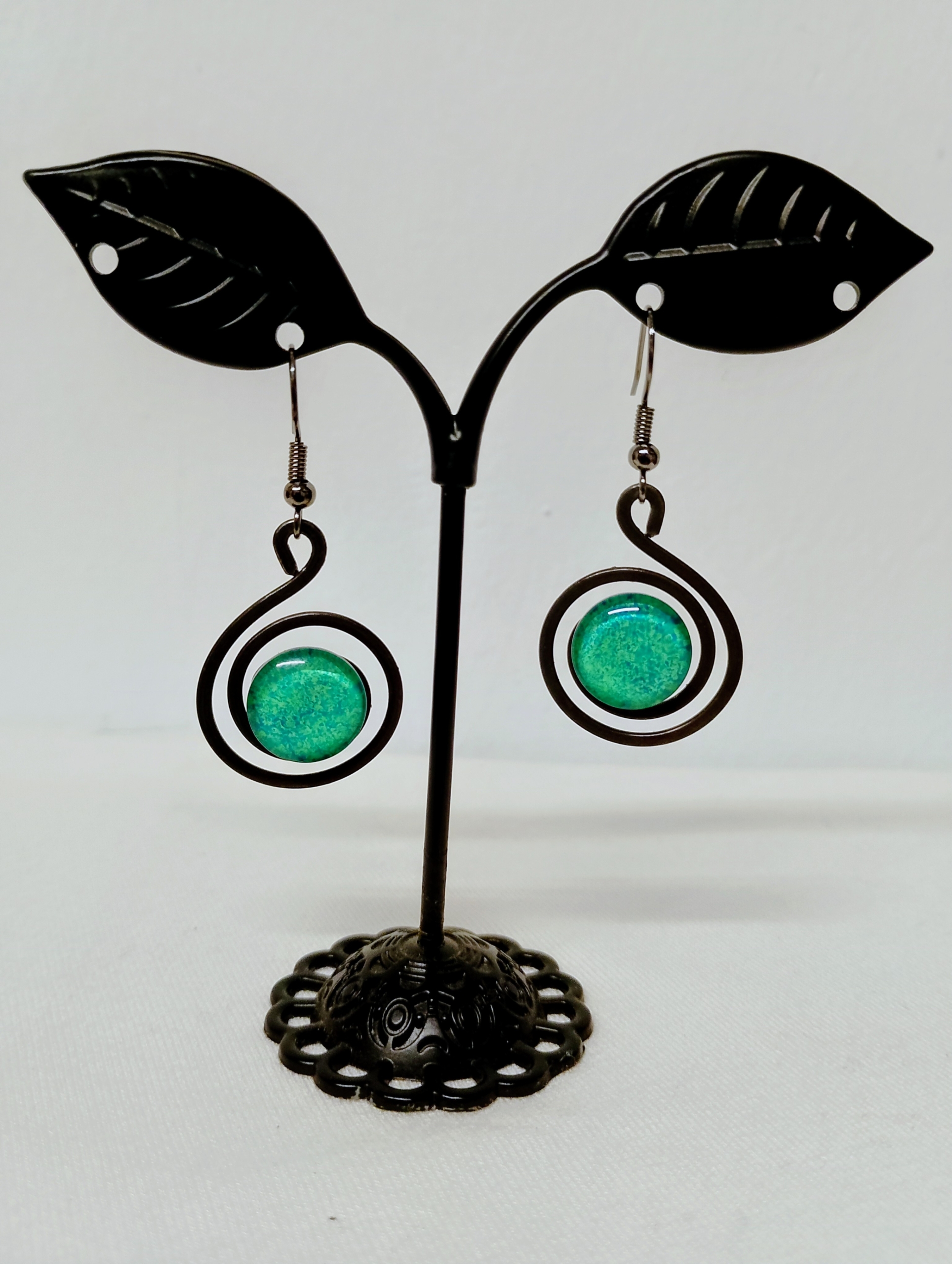 Además, su estructura ligera permite llevarlos durante todo el dÃa con total comodidad. Gracias a su metal hipoalergénico sin nÃquel, son ideales incluso para pieles sensibles. El contraste entre la forma espiral y el color del vidrio aporta un toque creativo que eleva cualquier look con naturalidad.