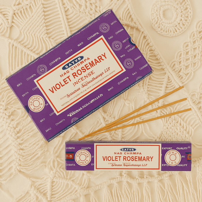 El incienso Romero Violeta de Satya combina la frescura herbal del romero con la suavidad floral de la violeta, creando un aroma equilibrado y envolvente.